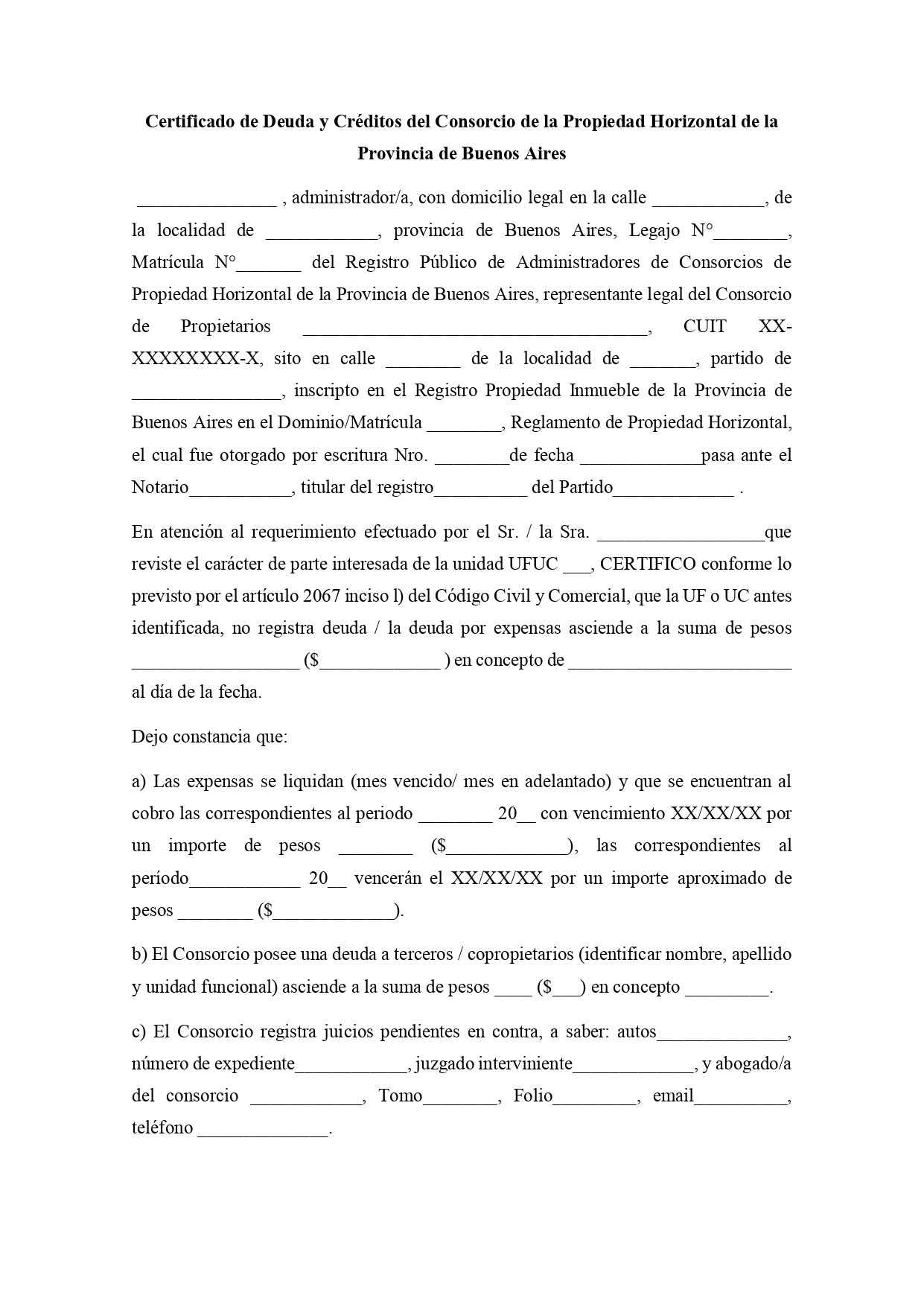 MODELO CERTIFICADO DE DEUDAS Y CRÉDITOS DEL CONSORCIO